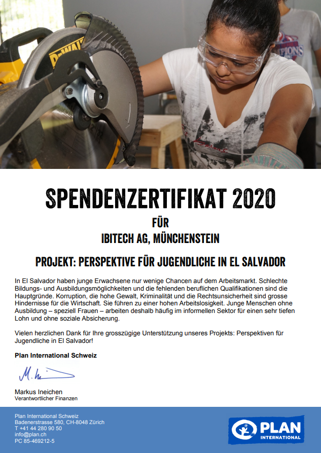 haben wir eine Spende von CHF 3'500,- an Plan International getätigt.