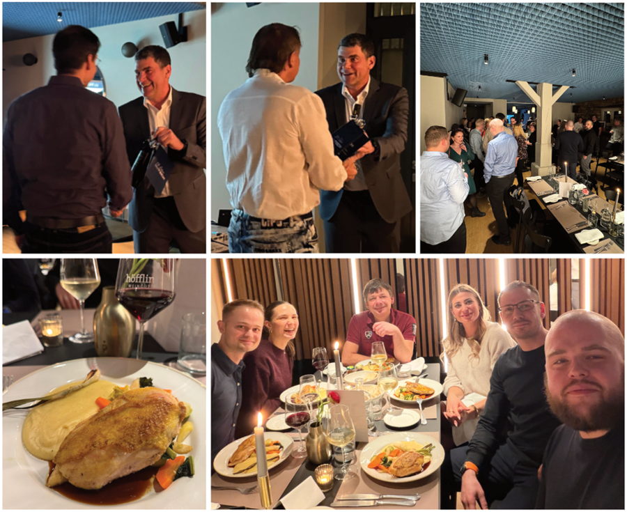 Gestartet wurde mit einem gemütlichen Sektempfang, ehe mit einem frischen, saisonalem Vorspeisensalat das Drei-Gänge-Menü eröffnet wurde. Vor den verschiedenen Hauptgängen ergriff unsere Geschäftsführung um Reinhold Klingert (CEO) und Marcus Müller (managing director) das Wort, um das Jahr in einer kurzweiligen und launigen Rede Revue passieren zu lassen.